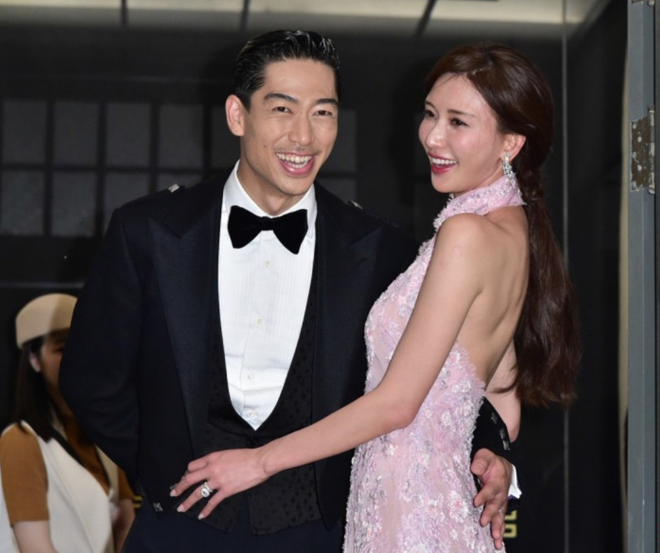 Nam ca sĩ Akira ân cần giúp vợ chỉnh sửa trang phục.