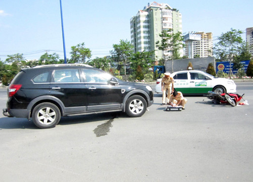 Trưa 7/4, anh Lê Văn Vình (37 tuổi, quê Bến Tre) chở mẹ Nguyễn Thị Mỹ (71 tuổi) bằng xe máy trên xa lộ Hà Nội, hướng từ ngã tư Thủ Đức về cầu Sài Gòn. Bất ngờ, hai mẹ con bị ôtô biển kiểm soát nước ngoài va trúng. Cầm lái là người phụ nữ khoảng 40 tuổi đeo kính mát, chở theo một đứa bé, đi từ đường Thảo Điền ra xa lộ Hà Nội.