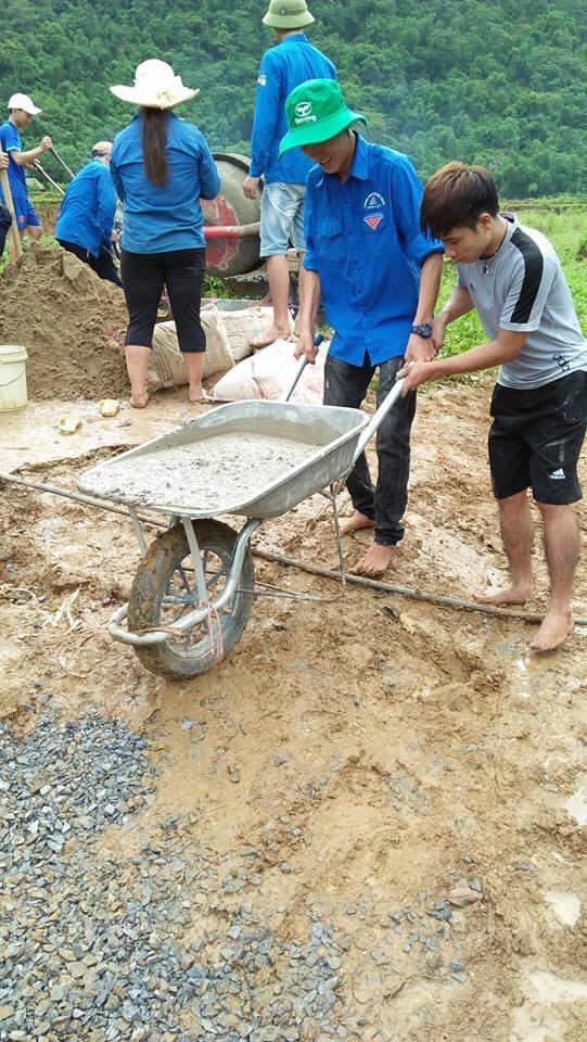 Ngoài làm đường bê tông giúp dân bản, đoàn tình nguyện còn tham gia các hoạt động văn hóa, văn nghệ khác tại địa phương.