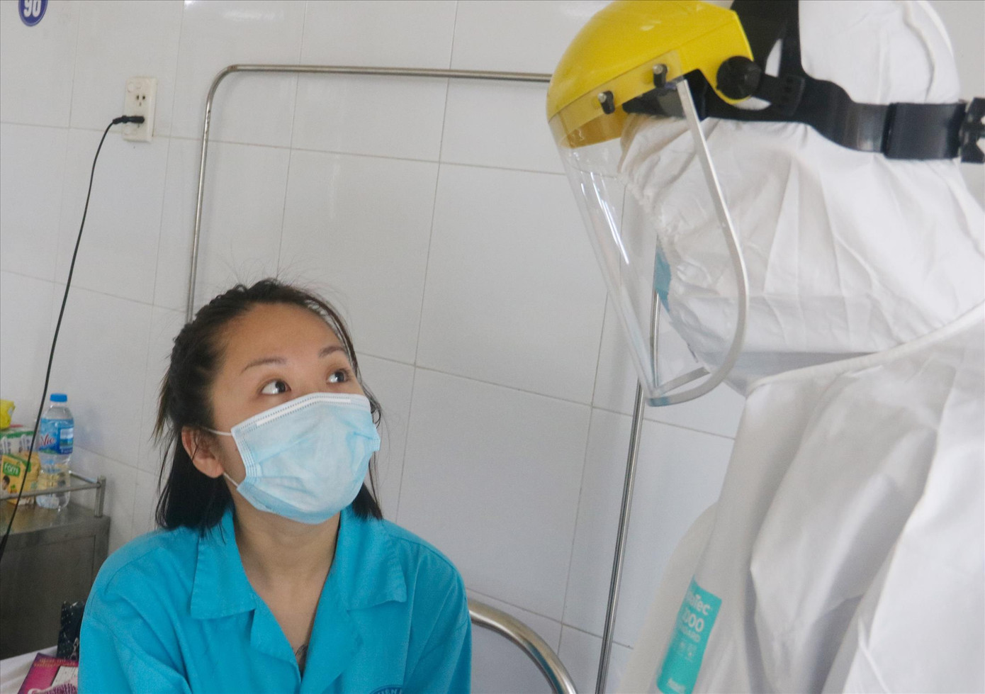 Ngày 8/4, chúng tôi lên lại Bệnh viện Đà Nẵng khi 5/6 ca bệnh đã được chữa trị khỏi và ra viện. Tinh thần anh chị em bác sĩ tại đây đã giãn ra, bớt căng thẳng bởi nữ bệnh nhân cuối cùng đã cho 2 lần kết quả xét nghiệm âm tính, chờ kết quả xét nghiệm lần 3. Gõ cửa phòng bác Hàm, xin phép vào phòng bệnh thăm bệnh nhân cuối cùng và mục sở thị việc chăm sóc chữa trị cho bệnh nhân, bác sĩ Hàm gật đầu đồng ý. “Giờ thì yên tâm hơn vì bệnh nhân đã hết virus. Phải an toàn chúng tôi mới dám cho người ngoài vào!”. Bác sĩ Hàm nói rồi gọi điều dưỡng trưởng chuẩn bị trang phục cho phóng viên vào khu cách ly.