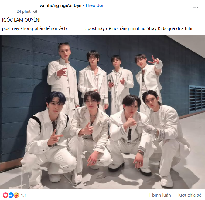 Bên cạnh đó, hòa vào cơn sốt của "góc lạm quyền", một số fanpage/blog cũng "đu trend" nhưng là "lạm quyền" nói lời yêu hoặc kêu gọi bình chọn, streaming cho chính thần tượng, nhóm mà trang đang ủng hộ. Người theo dõi không có lý do gì để phản đối "góc lạm quyền (như chưa hề lạm quyền)" này.