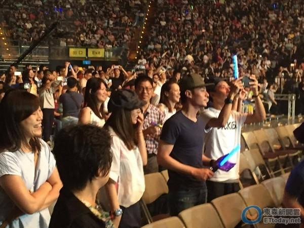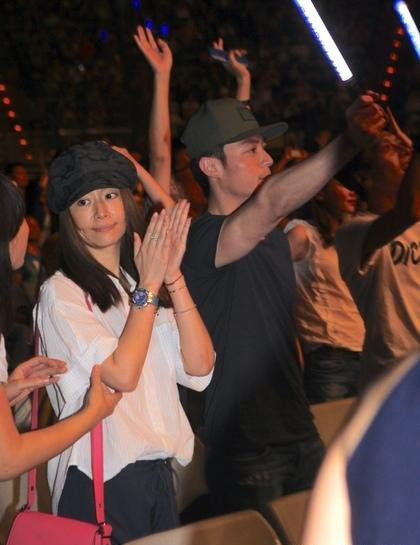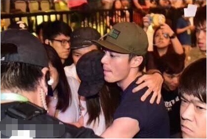 Sau khi buổi diễn kết thúc, cả hai ra về trong vòng vây đông nghịt của người hâm mộ. Hoắc Kiến Hoa choàng tay che chở cho bạn gái rất tình cảm.