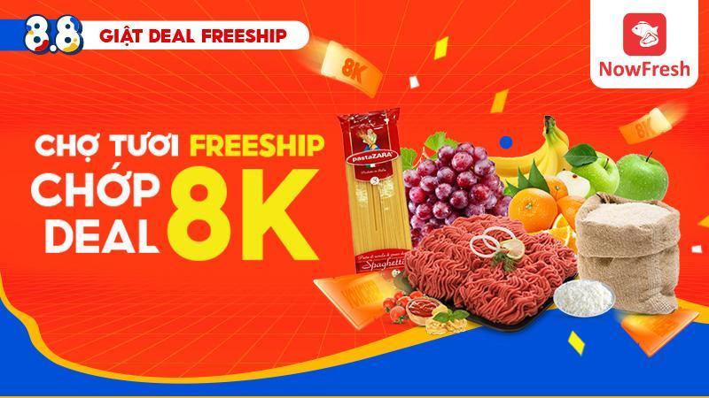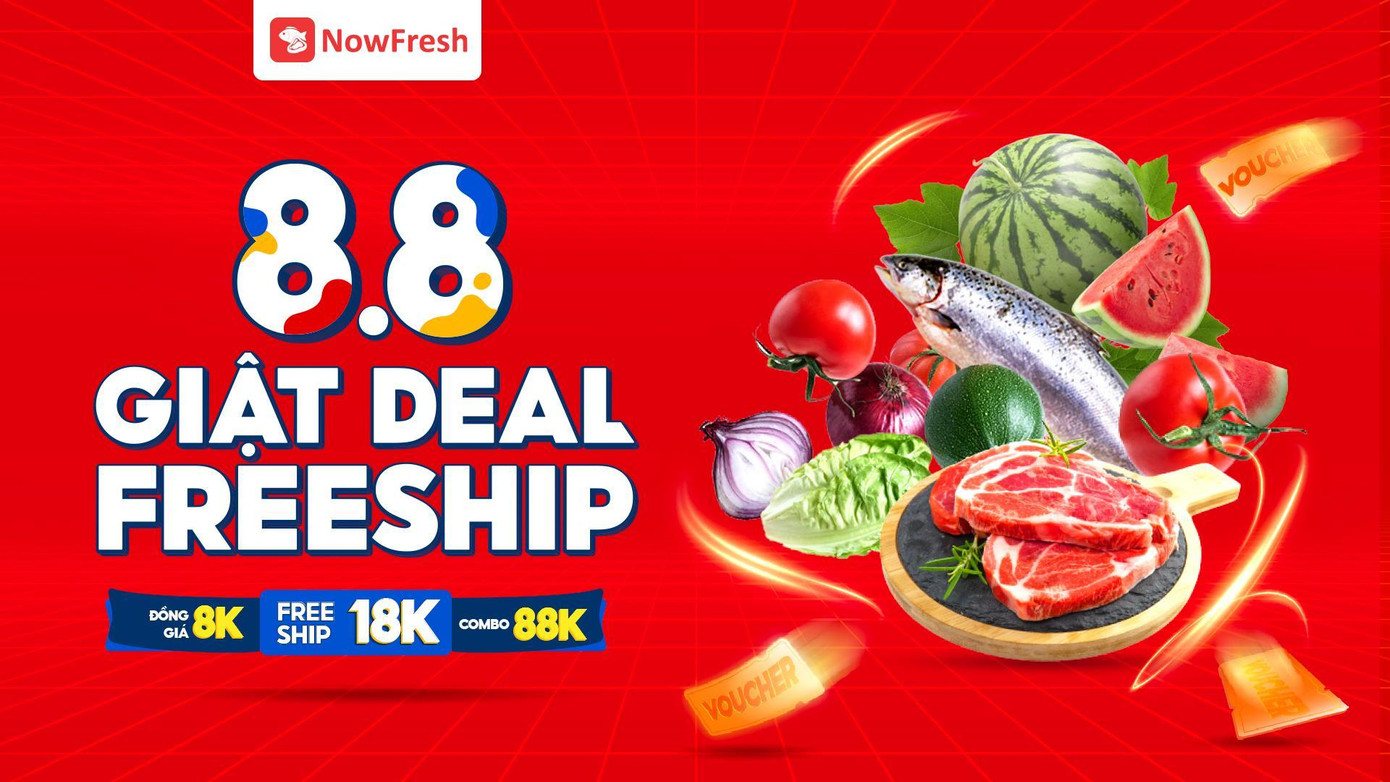 Áp dụng các ưu đãi, khuyến mãi khi sử dụng các dịch vụ đi chợ online là lưu ý hàng đầu để khách hàng tiết kiệm đáng kể trong mùa giãn cách. Với mong muốn tiếp sức mua sắm cho người dùng, khách hàng thỏa sức đặt hàng mà không cần lăn tăn đến giá, Now đã khởi động sự kiện "NowFresh 8.8 - Giật Deal Freeship”.