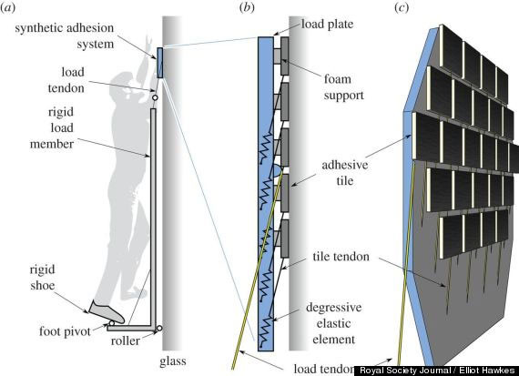 Giống như chân của loài tắc kè, các lớp chất liệu này cũng được cấu tạo từ những sợi nano siêu nhỏ, tạo nên một diện tích bề mặt lớn giúp cho miếng đệm có thể đủ chắc chắn để có thể bám dính tốt trên bề mặt kính. Đồng thời, bộ phận co dãn linh hoạt ở phía sau cũng sẽ giúp phân phối trọng lượng tốt hơn trong quá trình chịu tải cân nặng của con người.