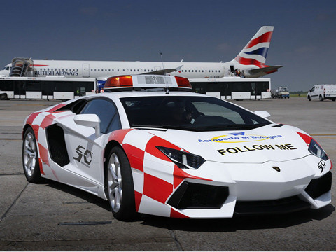 Lamborghini Aventador làm nhiệm vụ dẫn đường từ sân đỗ máy bay ra đường băng cất cánh cho các máy bay tại sân bay này.