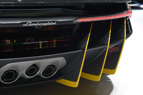 Thân xe làm mới, với nhiều lỗ thông và ống dẫn hơn cả một nhà máy điều hòa nhiệt độ. Đuôi xe là cả một công trình loại bỏ gió với bộ khuếch tán, cánh hướng gió cỡ lớn. Bộ 3 ống xả đặt giữa thể thao nâng cấp với âm thanh mới cuốn hút hơn. Thiết kế mới giúp Centenario dài hơn và trọng tâm sát đất hơn so với Aventador. Cặp đôi này có thể so sánh tương tự như cách Lamborghini từng làm với Reventon và Murcielogo.