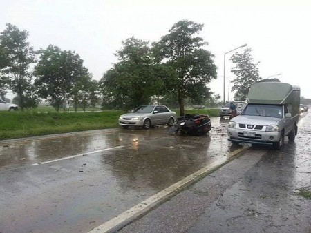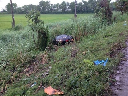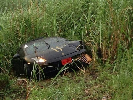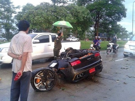 Vụ tai nạn xảy ra hôm 24/6 vừa qua. Cầm lái là một doanhnhân 40 tuổi. Xe đã chạy với tốc độ khoảng 150 km/h. Trời mưa nên đường ướt, khiếnbị mất lái và đâm vào gốc cây bên đường. Cú va chạm ở tốc độ cao đó đã bẻ gãychiếc siêu xe. Nửa thân trước văng ra bãi cỏ ven đường, còn nửa đuôi thì nằmtrên đường.