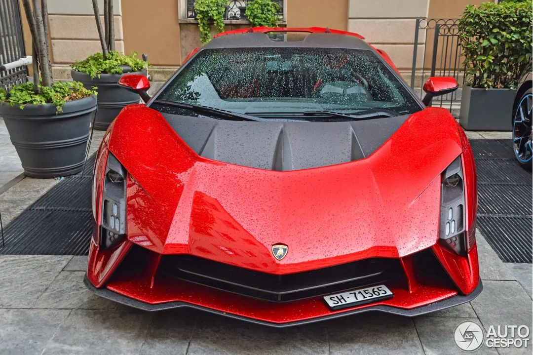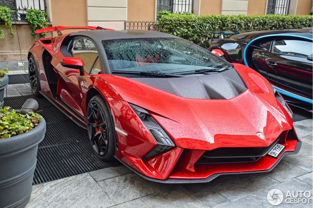 Chiếc siêu xe được phát hiện đậu bên cạnh mẫu hypercar Bugatti Chiron Zero-400-Zero Edition. Invencible nổi bật với sơn ngoại thất màu đỏ Rosso Efesto cùng nhiều chi tiết bằng sợi carbon bao gồm mâm thể thao kích thước 20 inch ở cầu trước và 21 inch ở cầu sau.