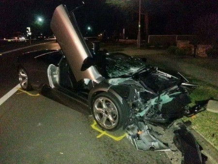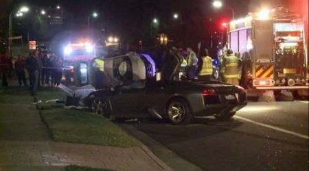Một chiếc Lamborghini Murcielago đã bị hỏng hoàn toàn sau vụ va chạm nghiêm trọng với một xe Honda SUV tại Sydney, Úc.