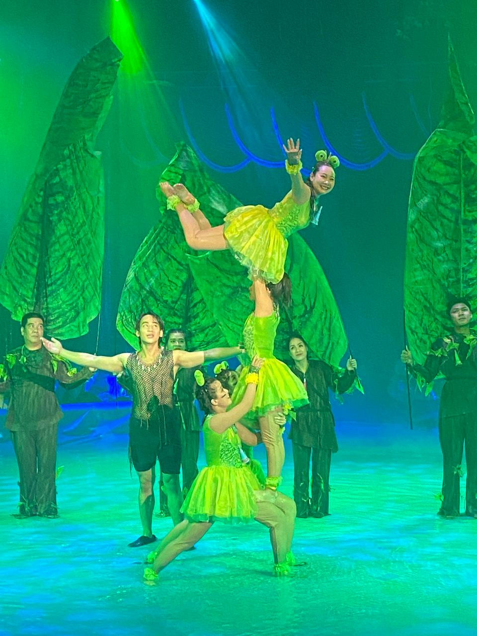 Đạo diễn Công Nguyễn (người đã thực hiện nhiều show diễn thực cảnh như “Tinh hoa Bắc Bộ”, “Ký ức Hội An”…) đã có những sáng tạo mới khi vận dụng diễn xiếc trên mặt nước. Lần này, muốn tạo sự mới lạ cho các bé, anh thu gọn mặt nước vào sân khấu tròn của nhà hát để các khán giả nhí có thể thấy được sự sinh động của các tiết mục được tương tác với nước như thế nào.
