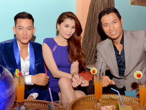 Được bạn bè trong giới mệnh danh là 'siêu vòng ba', Lan Hương đã tạo dáng bên cạnh hai nam người mẫu vô cùng cuốn hút.