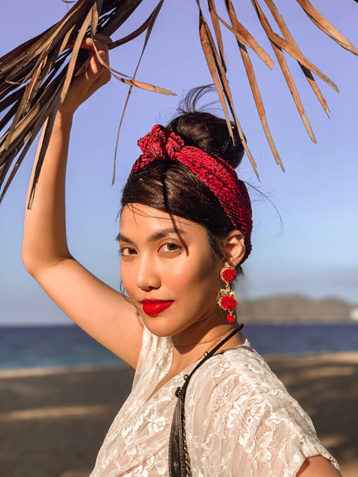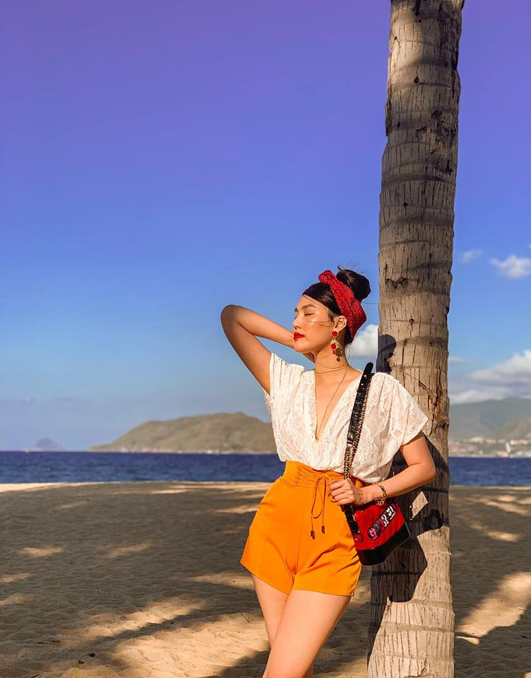 Cô cũng có cách phối đồ ấn tượng bằng những phụ kiện làm điểm nhấn như băng-đô hay hoa tai cùng gam màu, hoạ tiết.