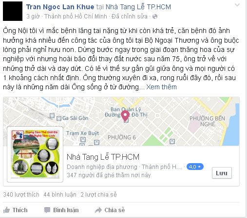 Lan Khuê chia sẻ: "Ông Đạm tuy là em trai của ông nội tôi nhưng tình cảm tôi dành cho ông như là ông nội thứ 2 của mình".