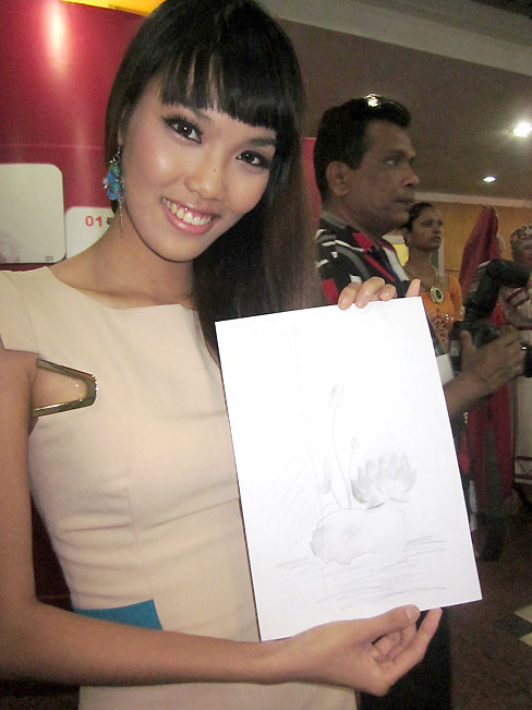 Các thí sinh nước khác phần lớn thi múa, hát, có một số nước không tham gia phần thi này Lan Khuê dự thi với bức tranh vẽ Hoa Sen. Tuy nhiên tác phẩm này của cô cũng khá bình thường.