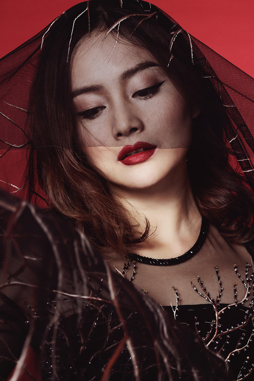 Với mắt nước sắc sảo, son môi lì đỏ thẫm, người đẹp mang vẻ đẹp bí ẩn trong dịp lễ hội Halloween đang đến gần.