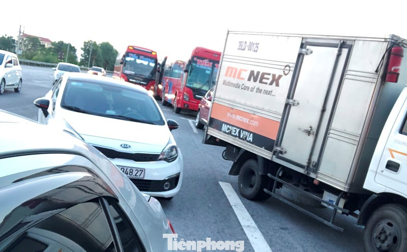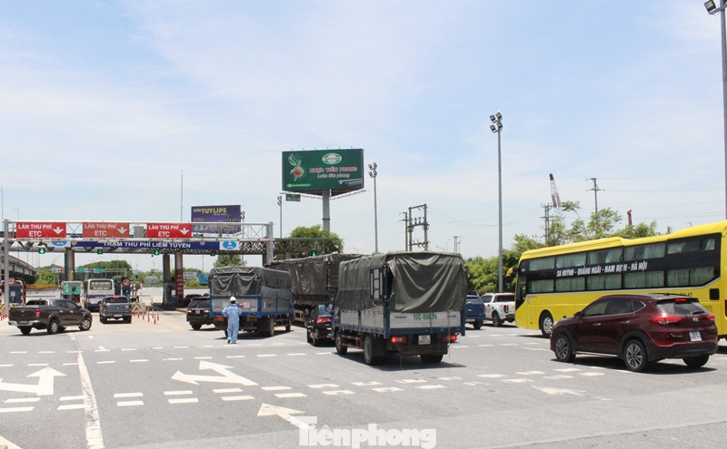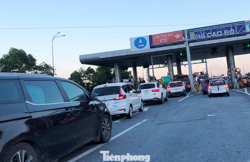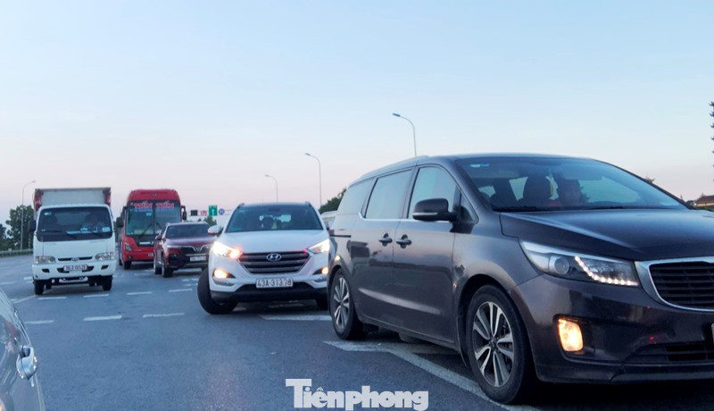 Thay vì thanh toán không dừng thì sáng sớm nay và chiều qua ô tô đi qua làn thu phí ETC cuối tuyến Pháp Vân - Cầu là trạm Cao Bồ phải xếp hàng dài nối đuôi nhau chờ qua trạm.