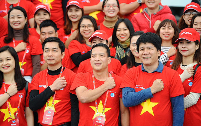 Dưới cờ đỏ sao vàng có diện tích 54 m2 tượng trưng cho 54 dân tộc anh em, các đại biểu đã cùng thể hiện tinh thần đoàn kết và lan tỏa tình yêu Tổ quốc. Đại diện cho tuổi trẻ Hà Giang, anh Thèn Văn Quân, Phó bí thư Tỉnh Đoàn, Chủ tịch Hội LHTN Việt Nam tỉnh Hà Giang đã truyền tải thông điệp tự hào khi được là những người con của quê hương giàu truyền thống cách mạng, là nơi được T.Ư Hội LHTN Việt Nam chọn là điểm dừng chân cuối của Hành trình “Tôi yêu Tổ quốc tôi” năm 2019.