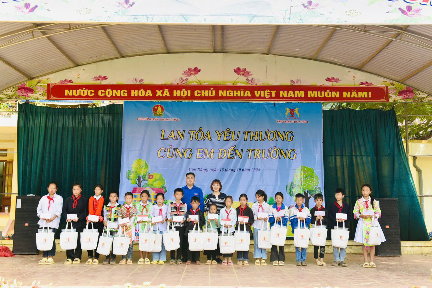 TPO - Ngày 18/10, tại Trường Tiểu học Mai Long, huyện Nguyên Bình, tỉnh Cao Bằng, Hội đồng Đội Trung ương, Trung tâm Hỗ trợ và Phát triển Thiếu nhi Việt Nam phối hợp với Tập đoàn The Vissai tổ chức chương trình “Lan tỏa yêu thương - Cùng em đến trường”.