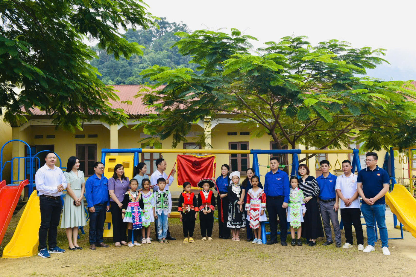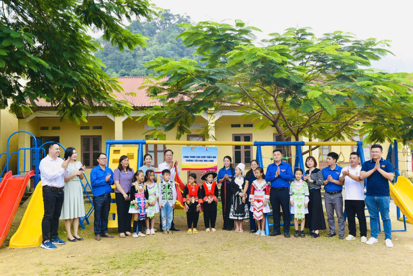| Nghi thức bàn giao công trình sân chơi cho các em thiếu nhi Mai Long. |