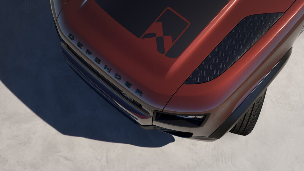 Ngoại thất của xe không có sự thay đổi đáng kể ngoại trừ việc bổ sung phiên bản Defender 110 Sedona được bán giới hạn trong vòng một năm. Bản này sở hữu màu ngoại thất đỏ Sedona Red kết hợp với đề can độc đáo trên nắp ca-pô xe, mâm hợp kim 22 inch màu đen bóng cùng nhiều chi tiết màu đen khác ở ngoại thất.