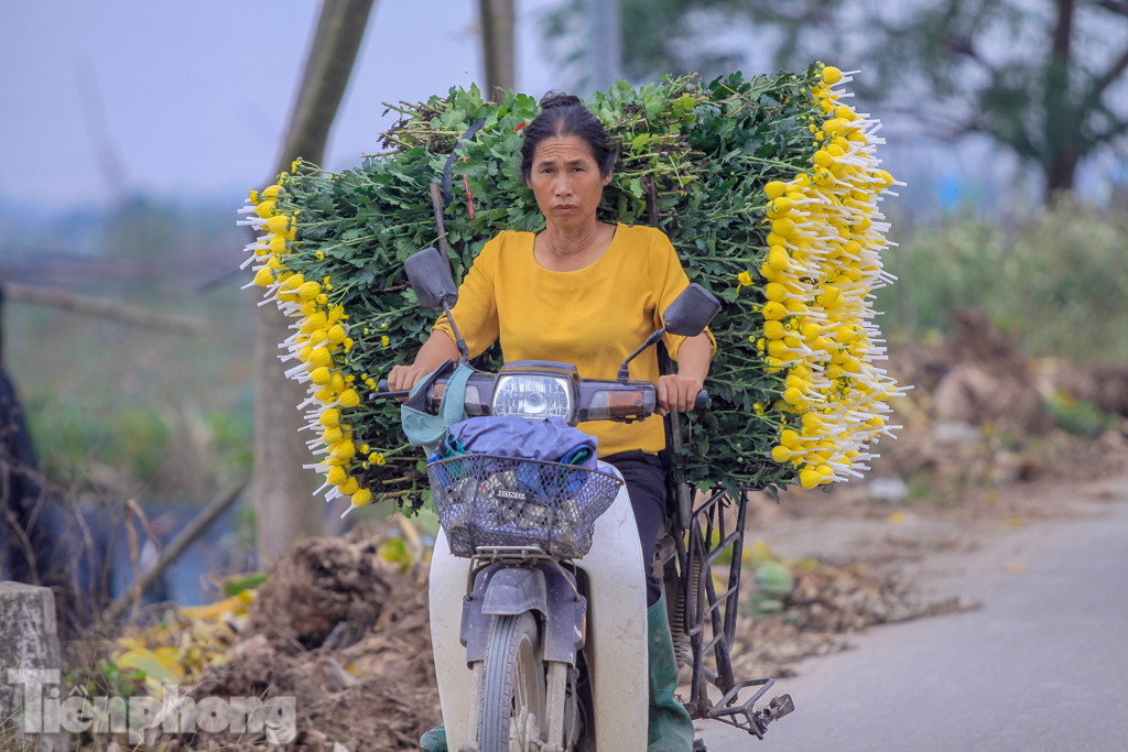 Những chuyến xe máy chở hàng trăm bông hoa thường xuyên xuất hiện trên đường Tây Tựu.