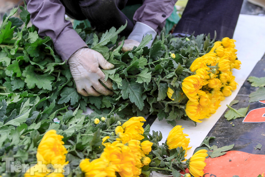 Trước khi được vận chuyển ra các cửa hàng, hoa được buộc theo từng bó với số lượng nhất định.