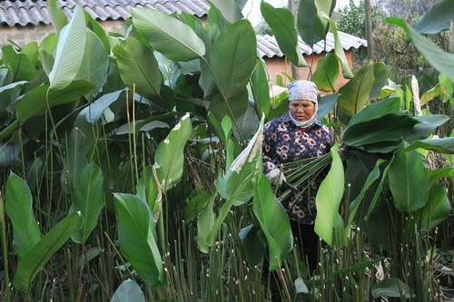 Người dân Trang Cát đang hối hả thu hoạch nốt những tàu lá dong cuối cùng để bán vụ Tết.