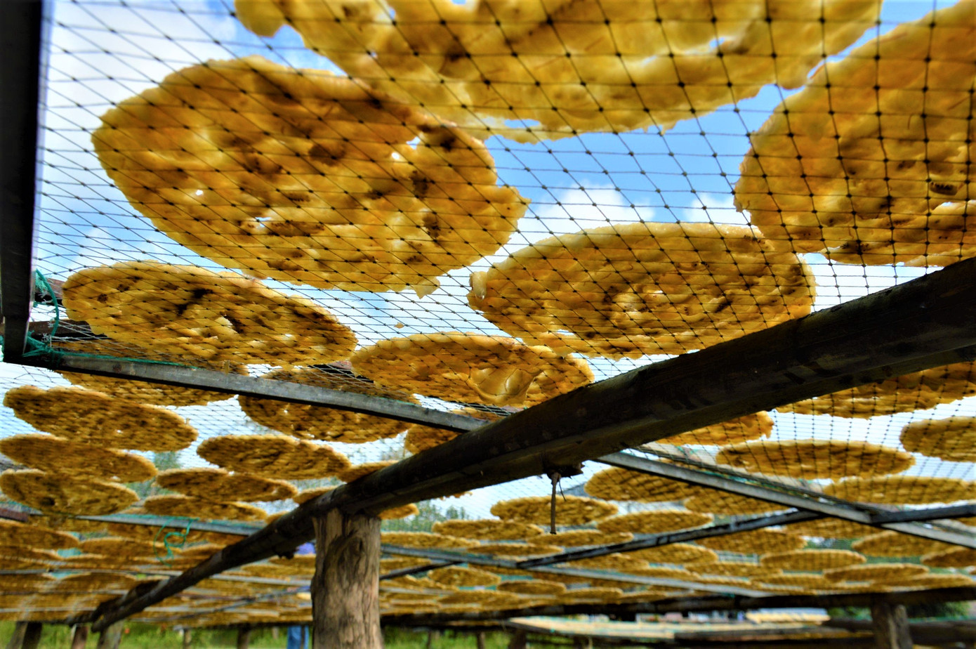 | Những miếng chuối hình tròn được đặt lên vỉ để phơi hai ngày hoặc sấy 12-16 tiếng bằng máy. |