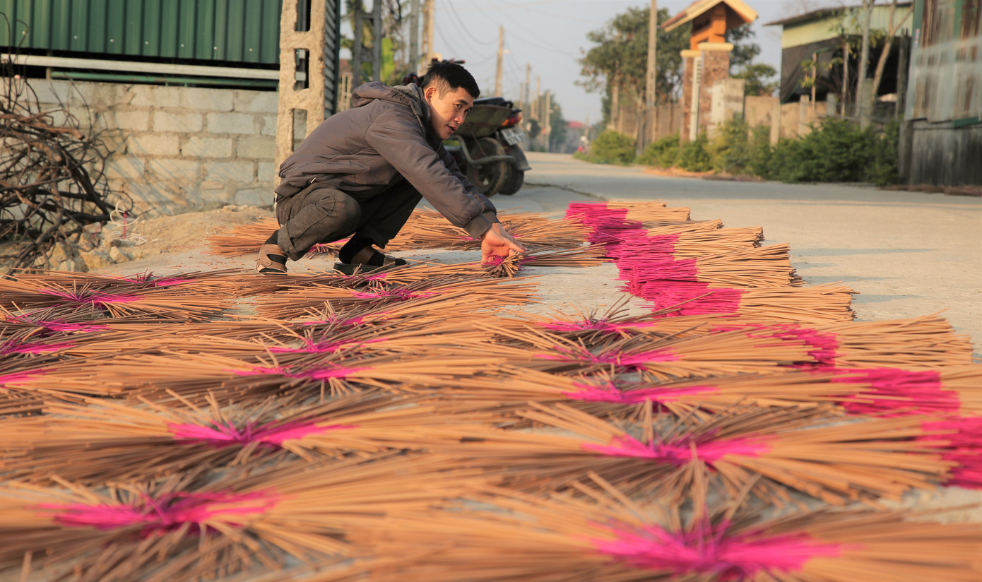 Tận dụng những ngày nắng ráo, nhiều gia đình đang tiếp tục làm hương.