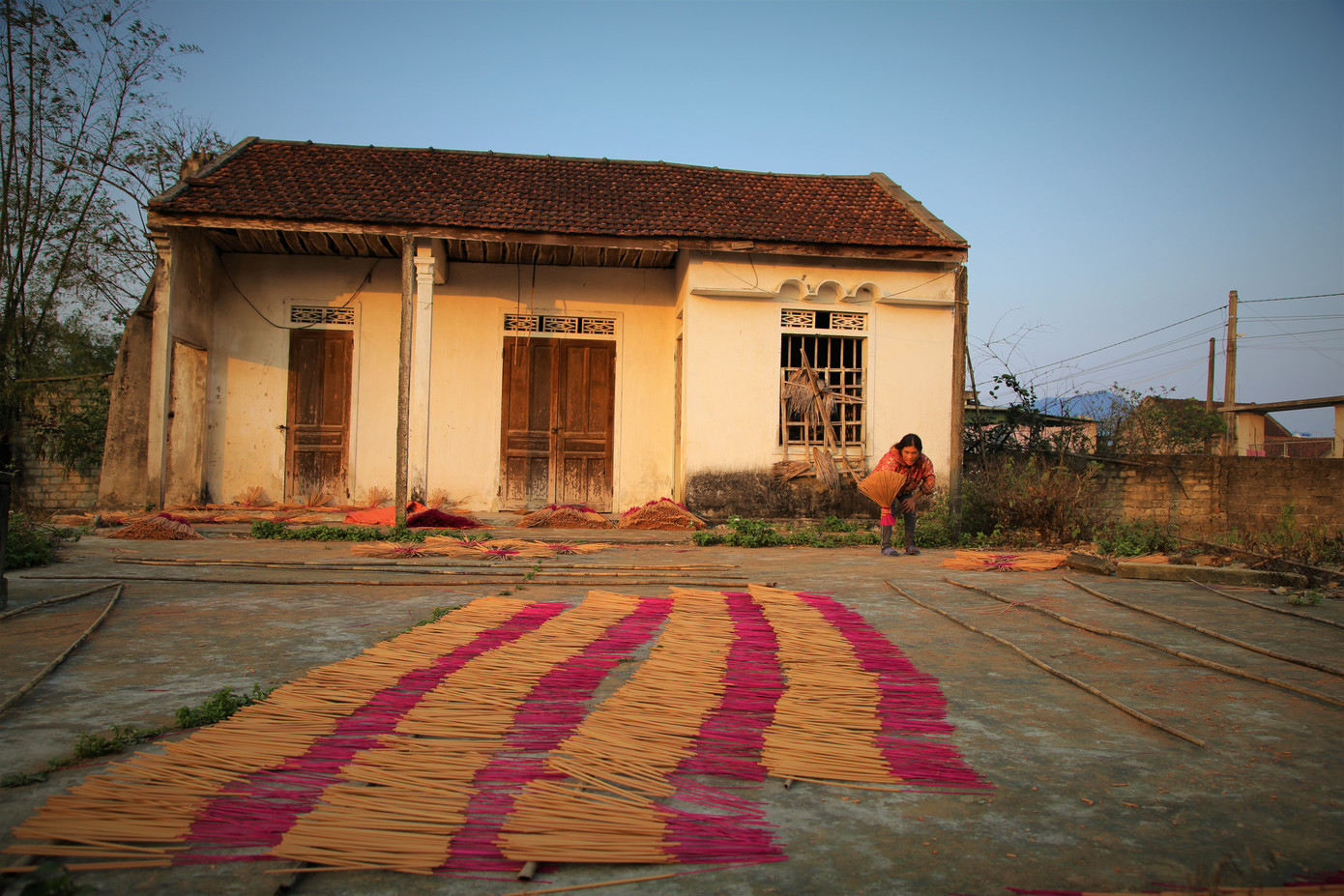 Sau khi hương được làm xong sẽ ra phơi, đến cuối chiều sẽ gom lại và đóng gói.
