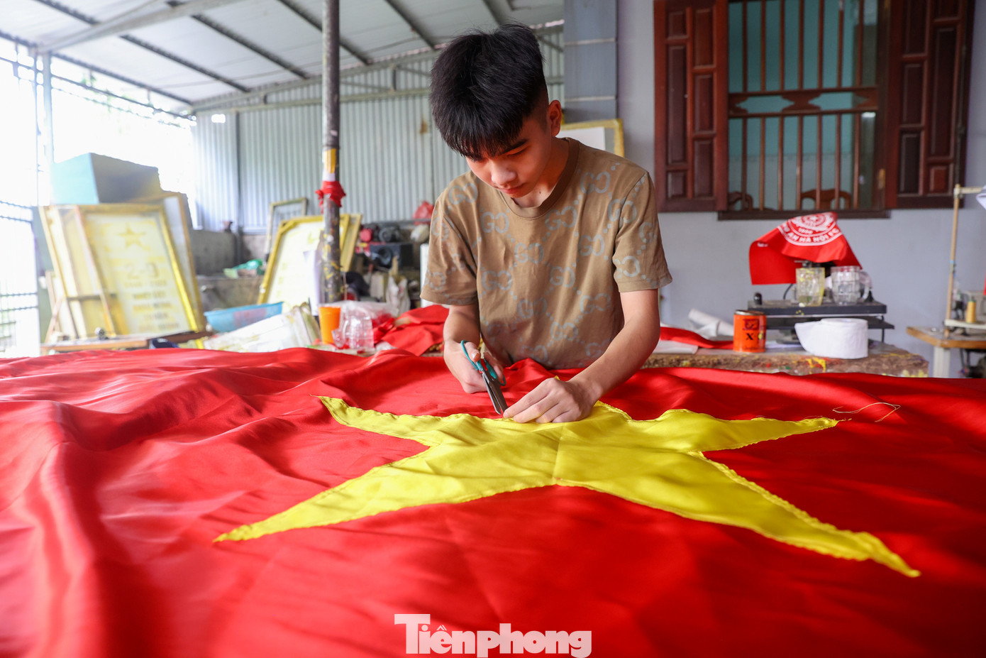 Những ngày cuối tháng 8, khi cả nước đang hướng về kỷ niệm ngày Quốc khánh 2/9 cũng là lúc những người thợ may cờ của làng nghề Từ Vân, xã Lê Lợi, huyện Thường Tín, Hà Nội, lại tất bật làm việc để kịp cung ứng cho thị trường cả nước.