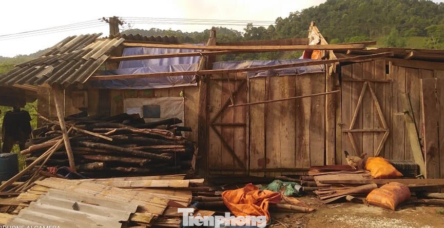 Các công trình phụ, nơi để nông cụ cũng bị tạt mái, hư hỏng .Ảnh: H. Hiếu