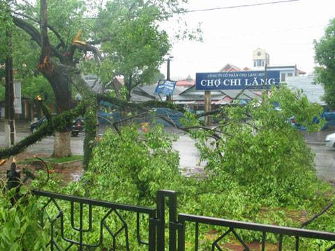 Cây cối đổ gãy do ảnh hưởng của bão Rammasun. Khu vực Chi Lăng lượng mưa đo được lên đến 158 mm.