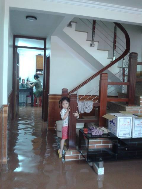 Nước ngập gần hết tầng một của ngôi nhà hai tầng.