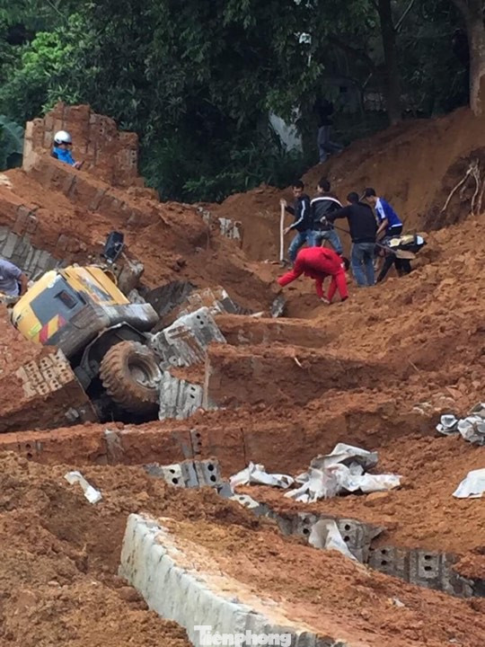 May được người dân tham gia giải cứu nên người lái máy xúc đã thoát được ra ngoài.