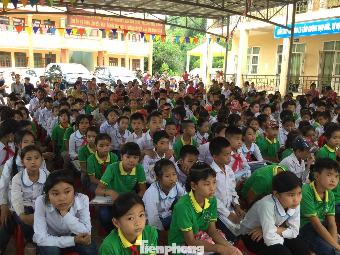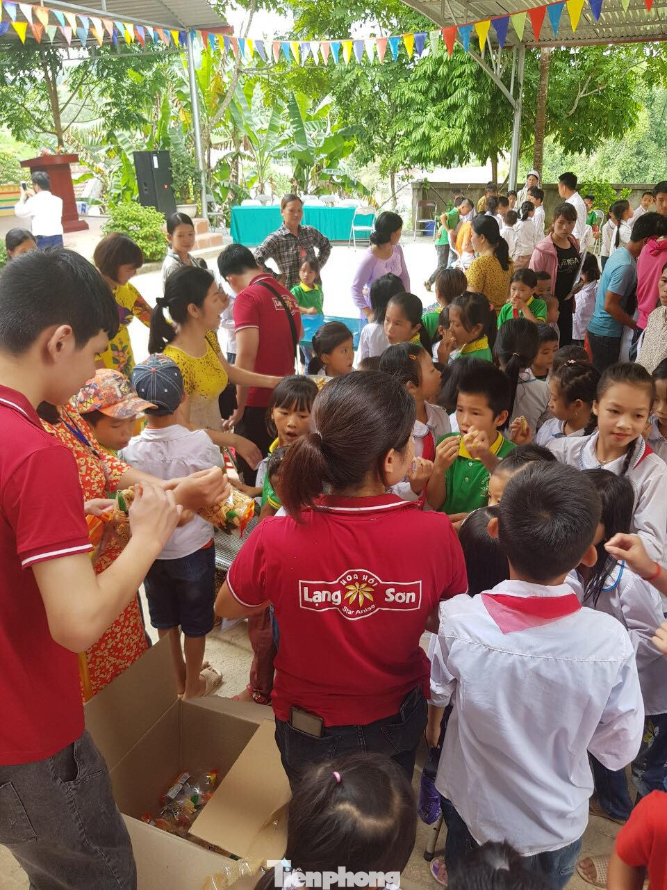 Các em học sinh trường Vân An háo hức đón chào chương trình thiện nguyện do báo Tiền Phong và Tỉnh đoàn Lạng Sơn tổ chức.