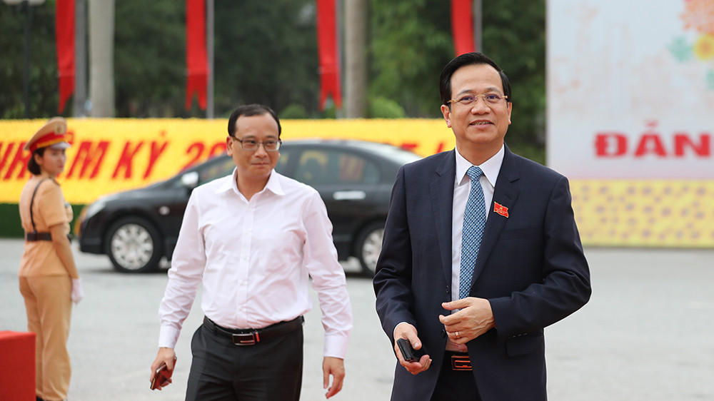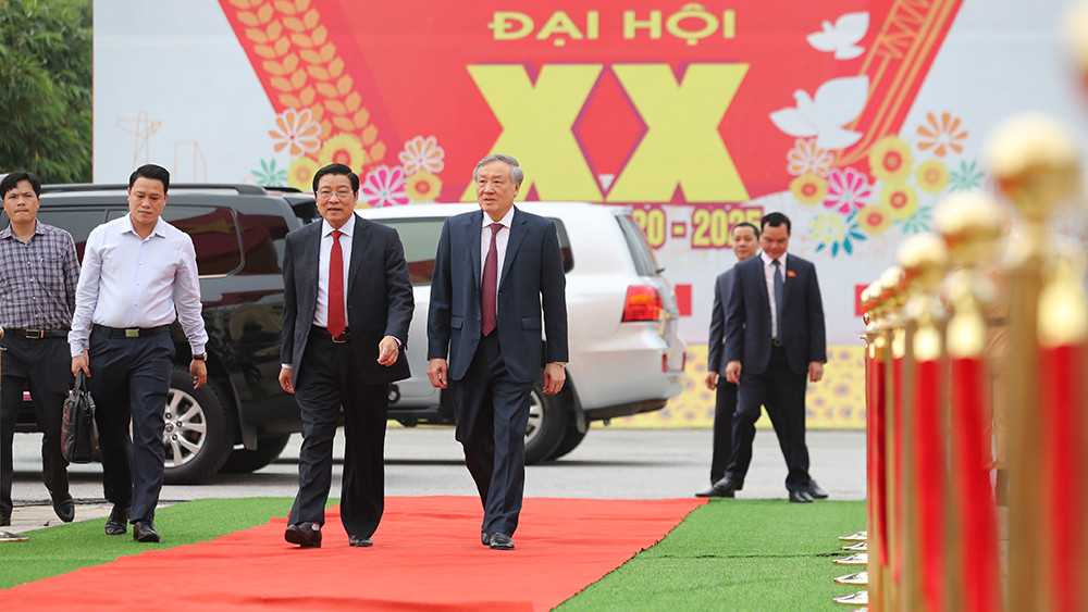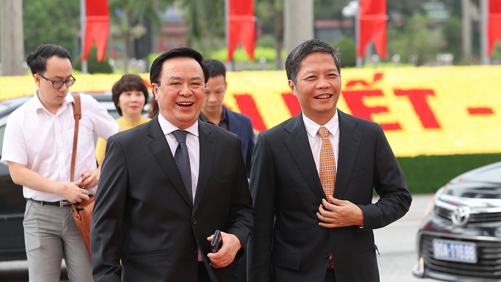 Bí thư Trung ương Đảng, Giám đốc Học Chính trị Quốc gia Hồ Chí Minh Nguyễn Xuân Thắng và Bộ trưởng, Chủ nhiệm Văn phòng Chính phủ Mai Tiến Dũng tới dự Đại hội.