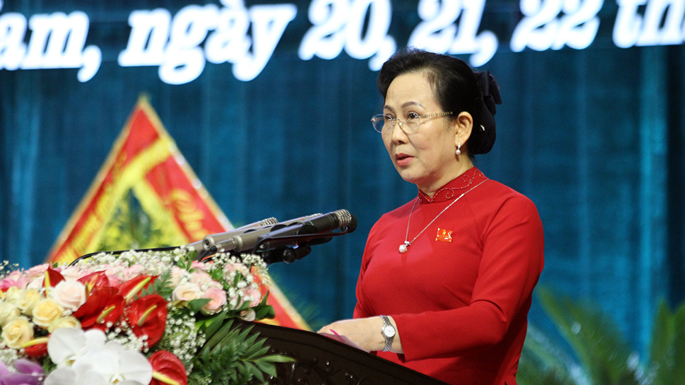 Bà Lê Thị Thủy, Bí thư Tỉnh ủy Hà Nam phát biểu khai mạc Đại hội