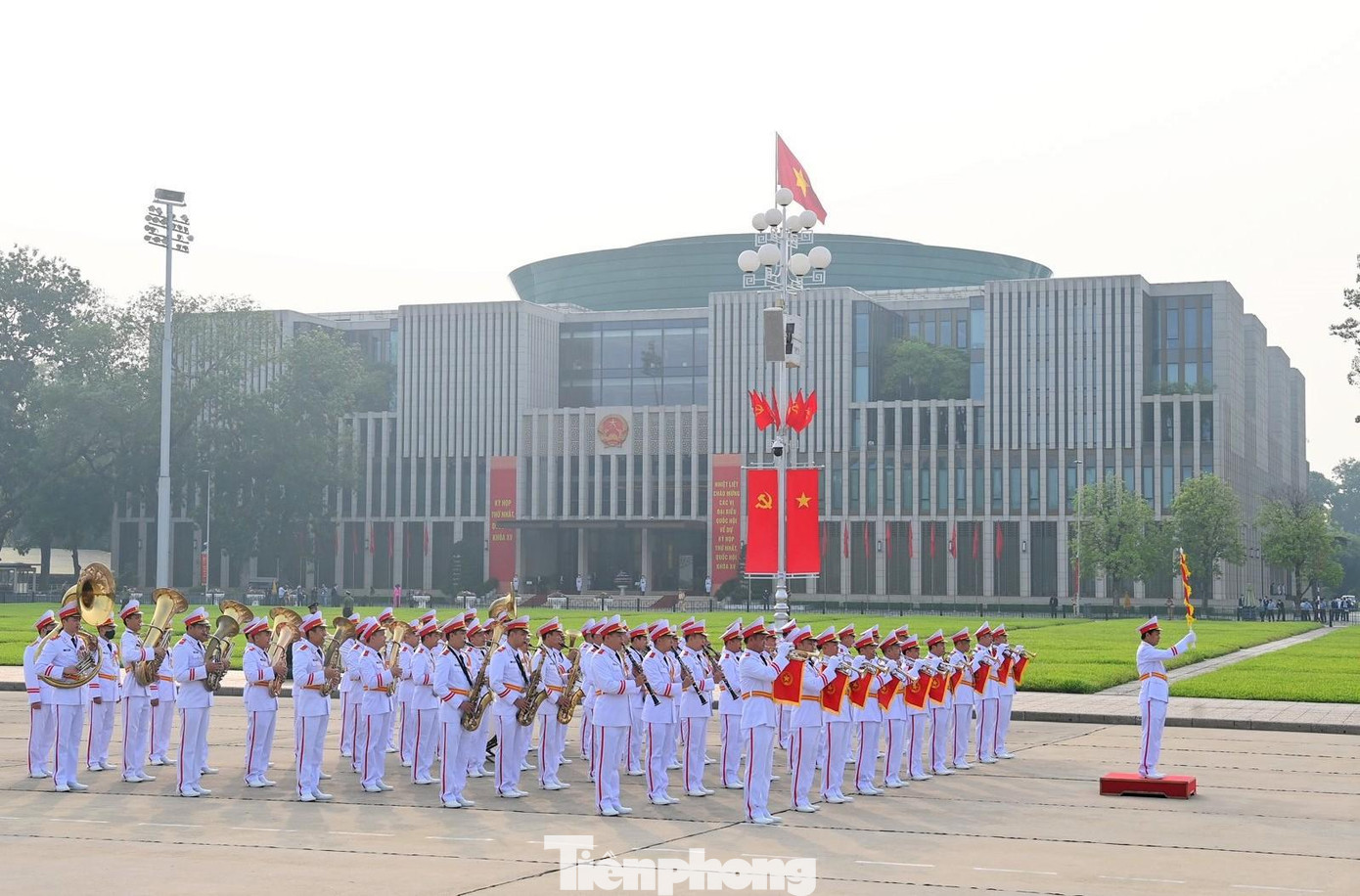 | Các đồng chí lãnh đạo Đảng, Nhà nước cùng các đại biểu Quốc hội vào Lăng viếng Chủ tịch Hồ Chí Minh và đặt vòng hoa tại Đài tưởng niệm các Anh hùng liệt sỹ (đường Bắc Sơn, Ba Đình, Hà Nội) |