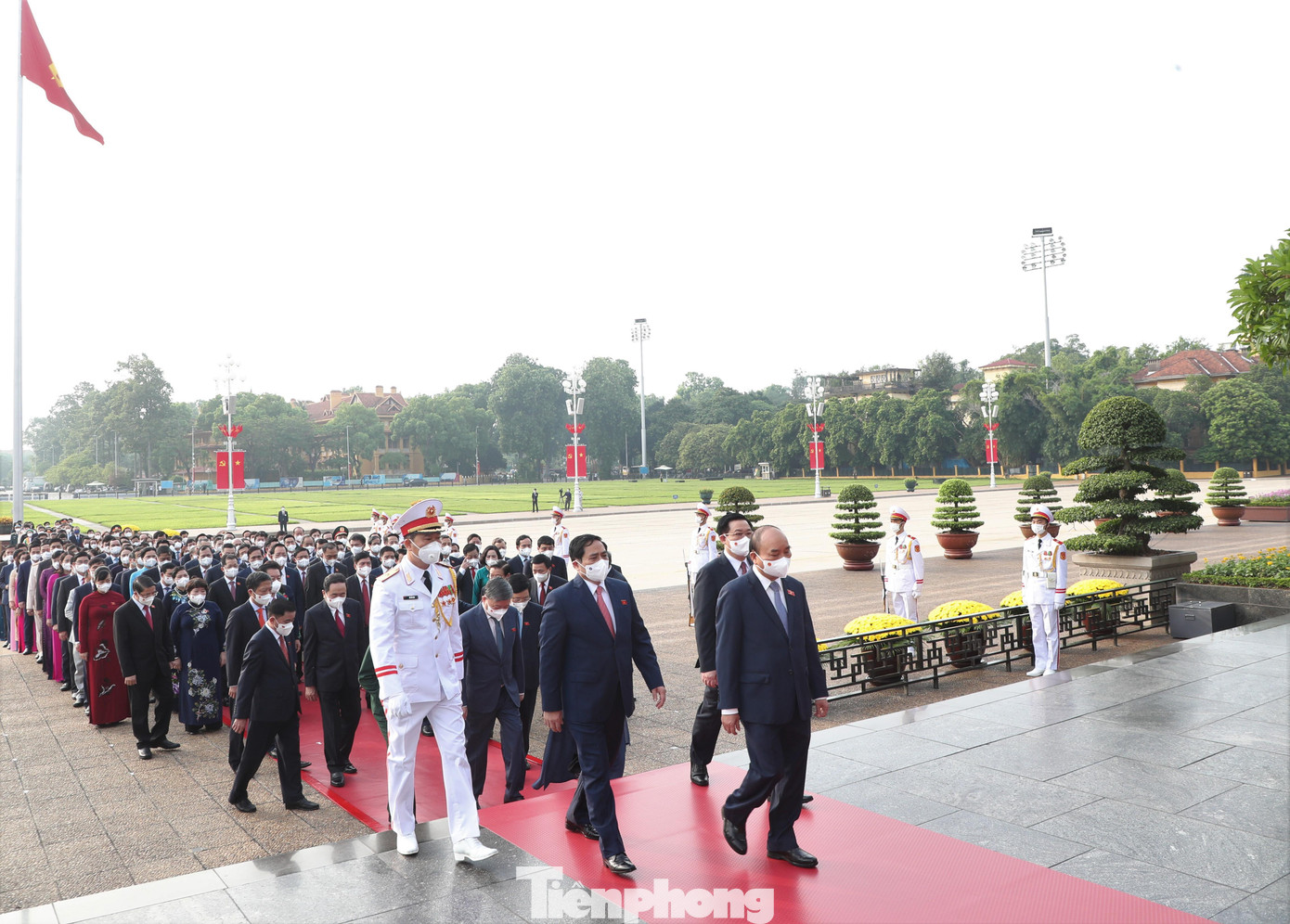 TPO - Sáng 20/7/2021, tại Hà Nội, các đồng chí lãnh đạo Đảng, Nhà nước cùng các đại biểu Quốc hội tham dự Kỳ họp thứ nhất, Quốc hội khóa XV vào Lăng viếng Chủ tịch Hồ Chí Minh và đặt vòng hoa tại Đài tưởng niệm các Anh hùng liệt sỹ (đường Bắc Sơn, Ba Đình, Hà Nội).