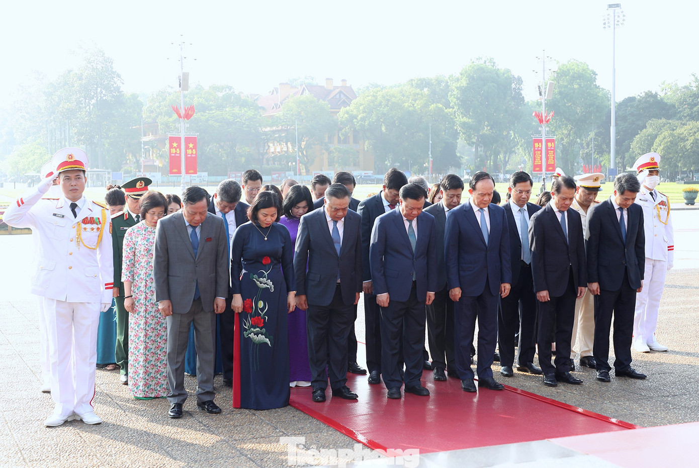 | Đoàn đại biểu Ban Chấp hành Trung ương Đảng, Chủ tịch nước, Quốc hội, Chính phủ, Ủy ban Trung ương Mặt trận Tổ quốc Việt Nam đặt vòng hoa, vào Lăng viếng Chủ tịch Hồ Chí Minh. |