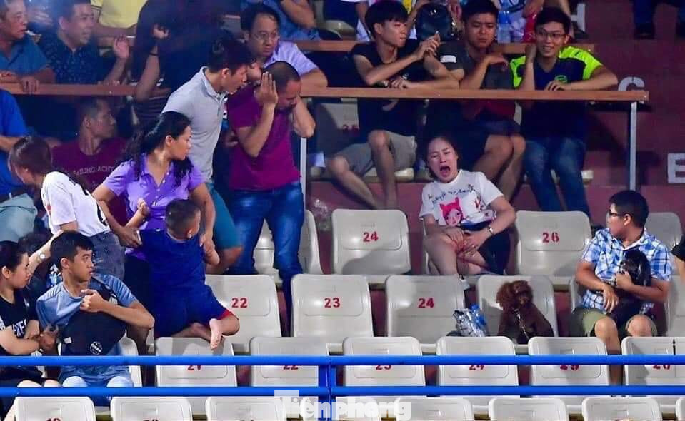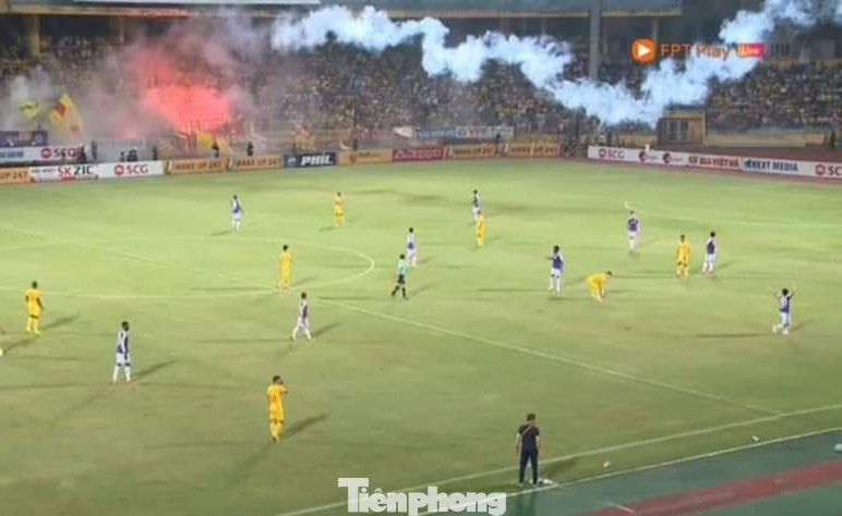 Trước đó, như Tiền Phong đã thông tin, trong trận gặp Hà Nội tại sân Hàng Đẫy, đội Nam Định liên tục nhận bàn thua nên các CĐV mất bình tĩnh, la hét, ném chai lọ và đốt pháo sáng. Đặc biệt, sau khi Kebe nâng tỷ số lên 4-1 ở phút 54 cho Hà Nội FC, một CĐV quá khích của Nam Định đã bắn pháo thăng thiên sang khán đài A dành cho khán giả đội nhà. Mảnh pháo rơi trúng đùi chị Tô Huyền Anh, (34 tuổi, hiện làm việc tại báo Nhi Đồng) khiến chị Huyền Anh phải vào Bệnh viện Xanh Pôn cấp cứu với vết thương trên đùi dài khoảng 20 cm, rách vào đến tận xương.