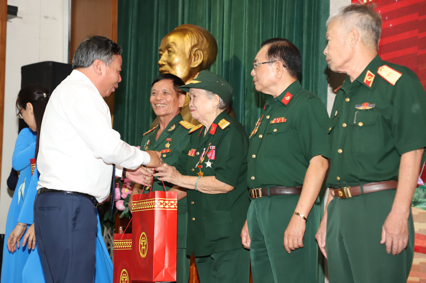 | Lãnh đạo TP. Hà Nội và TPHCM tặng quà tri ân người có công với cách mạng. |