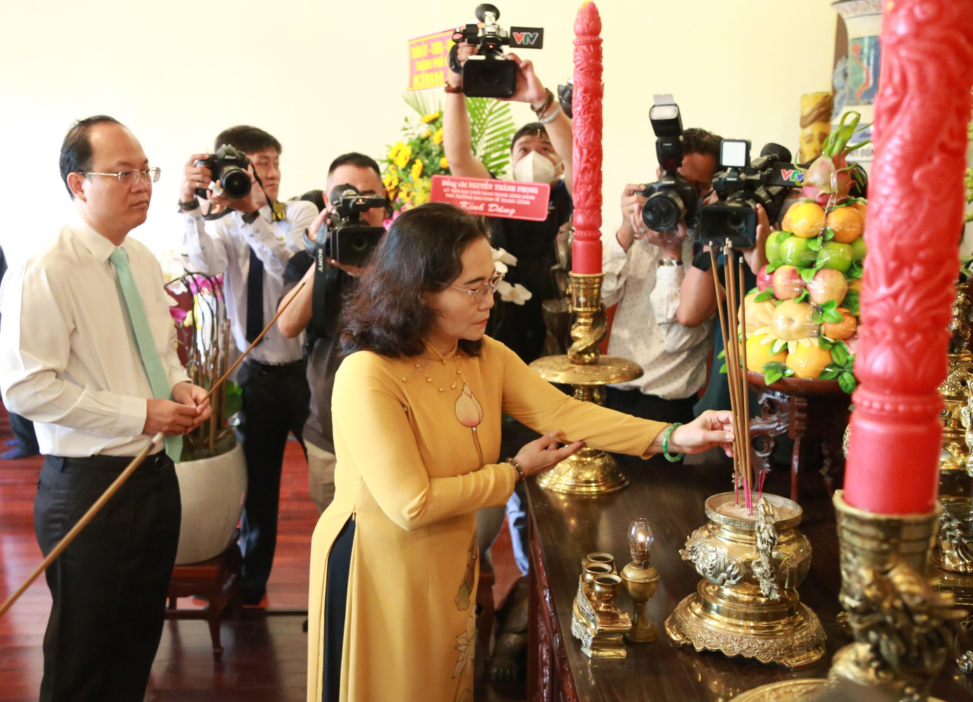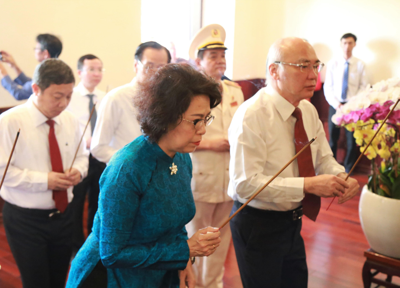 Cùng với đó, đoàn đại biểu TPHCM đã thành kính dâng hương tưởng nhớ công ơn của Chủ tịch Tôn Đức Thắng, người chiến sĩ cộng sản tiên phong của giai cấp công nhân Việt Nam.