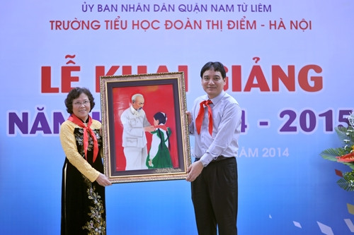 Tại buổi lễ, anh Nguyễn Đắc Vinh đã trao tặng thầy và trò nhà trường bức tranh Bác Hồ quàng khăn đỏ cho thiếu nhi với mong muốn nhắc nhở các em đội viên và nhi đồng của nhà trường luôn chăm ngoan, học giỏi, cùng nhau thi đua rèn luyện và tham gia các hoạt động của Đội TNTP Hồ Chí Minh; xứng đáng là lớp người kế tục sự nghiệp vinh quang của Đảng, tự hào là những chủ nhân của đất nước Việt Nam anh hùng. Dịp này trường Tiểu học Đoàn Thị Điểm được UBND thành phố Hà Nội, Sở Giáo dục - Đào tạo Hà Nội phê duyệt đề án trở thành trường Tiểu học chất lượng cao Đoàn Thị Điểm.