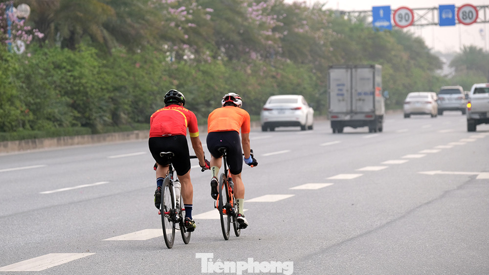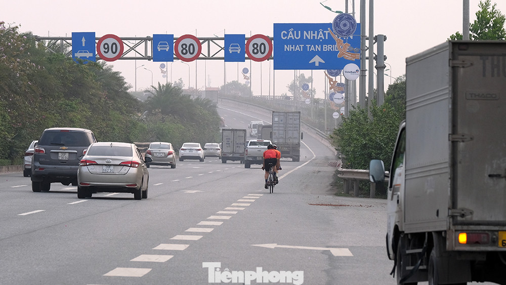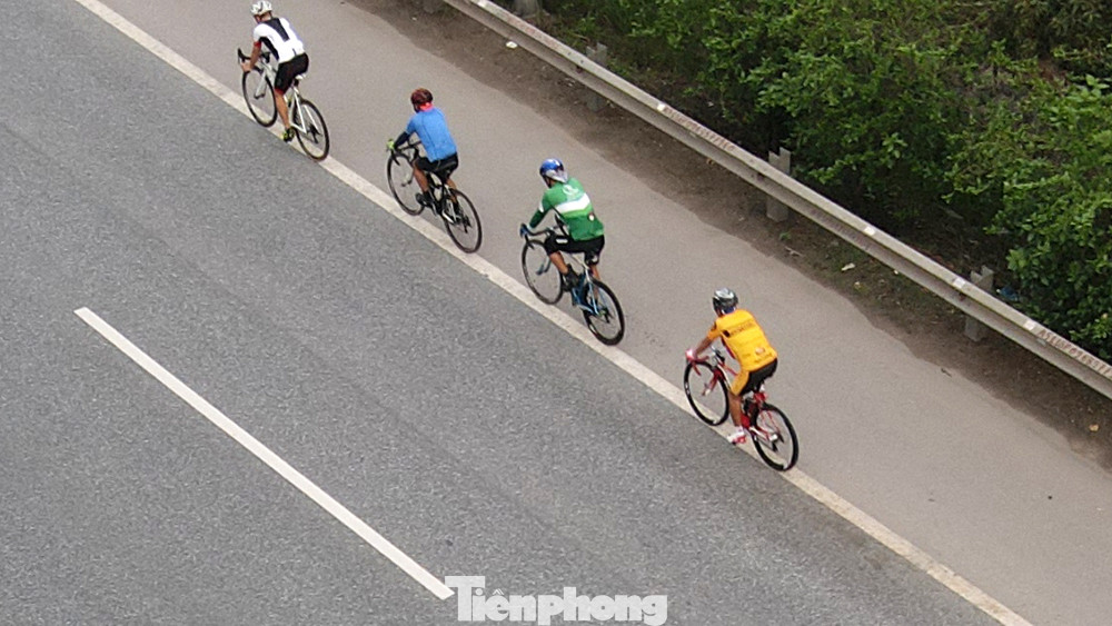 TPO - Đại lộ Võ Nguyên Giáp (Hà Nội) nối từ cầu Nhật Tân đến sân bay Nội Bài, thường xuyên xuất hiện những tốp đi xe đạp vào làn đường cho xe ô tô, trong những ngày cuối tuần.