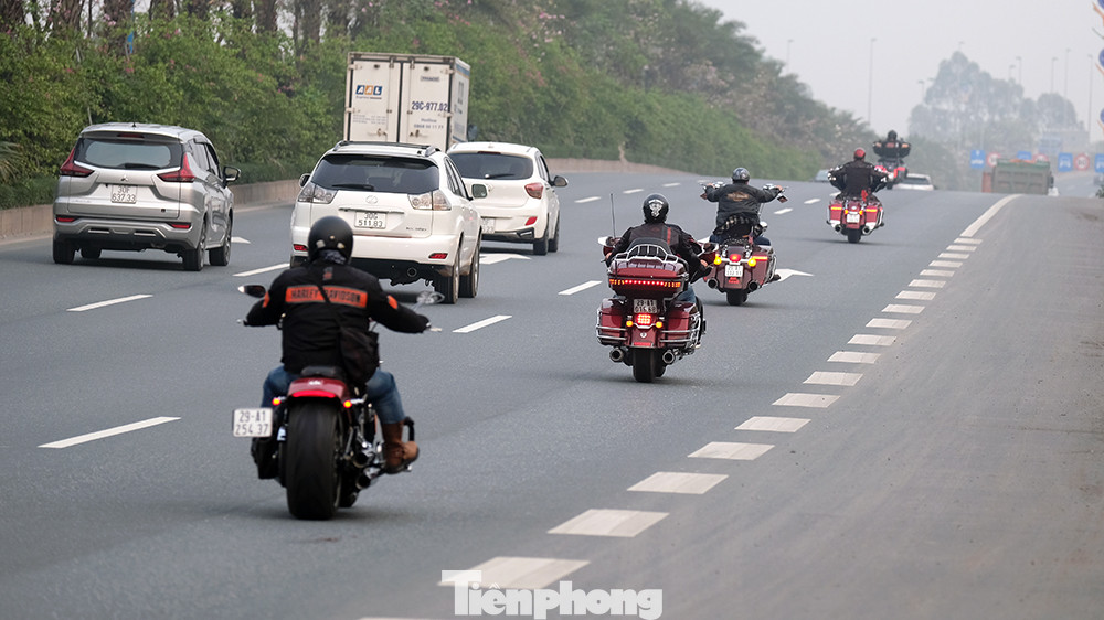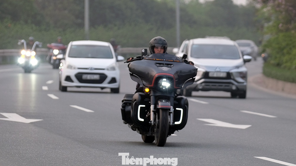 Bên cạnh những tốp xe đạp đi vào đường cấm, thỉnh thoảng còn xuất hiện những đoàn xe mô tô phân khối lớn chạy như đua trên con đường này.