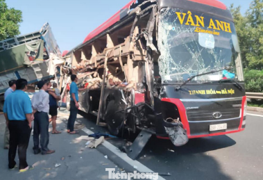 Khi đến đoạn cách nút giao Liêm Tuyền khoảng 1 km (thuộc địa bàn thôn Thường Ấm, xã Tiên Hải, thành phố Phủ Lý, tỉnh Hà Nam ), xe khách bất ngờ 'húc' mạnh vào xe tải mang BKS 36C 064.11 đang dừng đỗ, sửa chữa trong làn khẩn cấp.