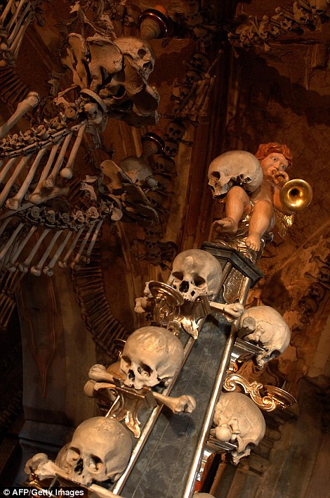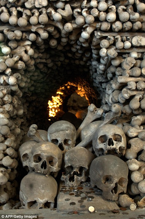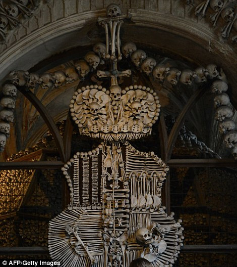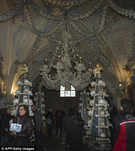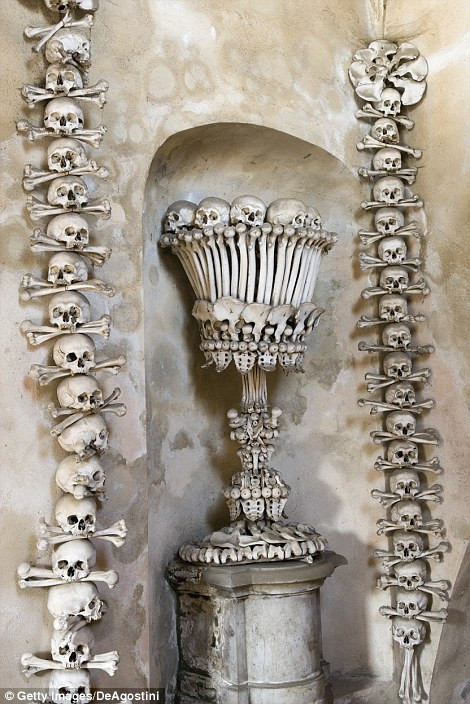 Được biết đến như là "Nhà thờ hài cốt", tòa nhà rùng rợn này chứa những bộ đèn chùm xương, chén thánh xương và một gia huy xây dựng từ xương người