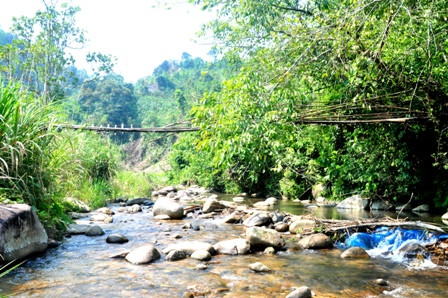 Anh cán bộ huyện cho biết, bây giờ mùa khô, nước suối cạn có thể lội được qua suối nên người dân ít sử dụng cầu treo để đi, còn mùa mưa thì không thể lội suối được nên cầu treo lúc này mới phát huy hiệu quả.